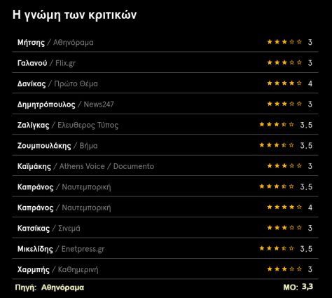 Διαβάστε ΕΔΩ τις κριτικές των ελληνικών ΜΜΕ για την ταινία (από το yourate.gr).