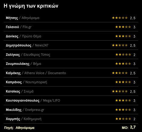 Διαβάστε ΕΔΩ τις κριτικές των ελληνικών ΜΜΕ για την ταινία (από το yourate.gr).